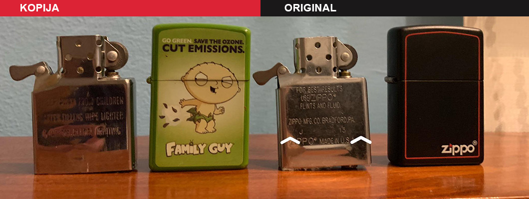 Ako želiš dugotrajan, pouzdan i kvalitetan upaljač original je uvek bolji izbor. Kopije mogu izgledati slično na prvi pogled, ali razlika u kvalitetu, osećaju i trajnosti je ogromna. Uvek u životu postoje kopije i originali, uvek je na nama šta više želimo. Naravno neko će reći da je dobra i kopija ali jedan je original koji možete i čuvati te ostaviti u nasleđe potomcima itd. Zato je uvek preporuka kupovati proverene i originalne Zippo modele, posebno ako želite proizvod koji će trajati godinama.